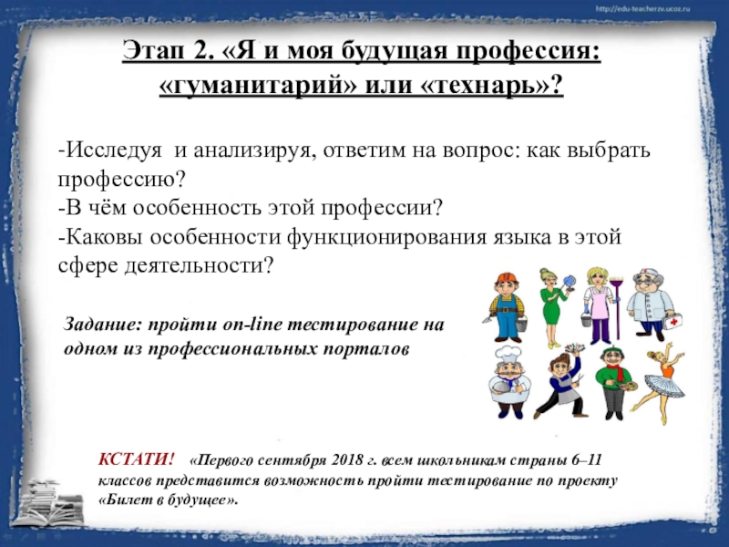 КСТАТИ! «Первого сентября 2018 г. всем школьникам страны 6–11 классов представится возможность пройти тестирование по проекту «Билет в будущее».