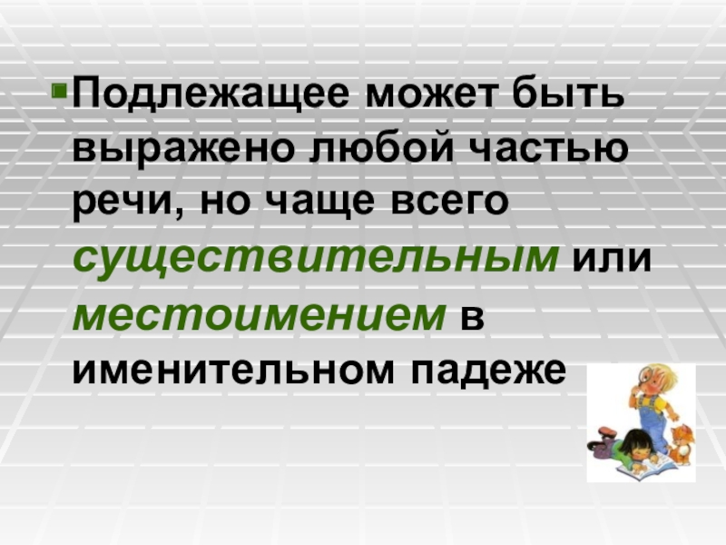 Слайд 8Подлежащее может быть выражено любой частью речи, но чаще всего существительным