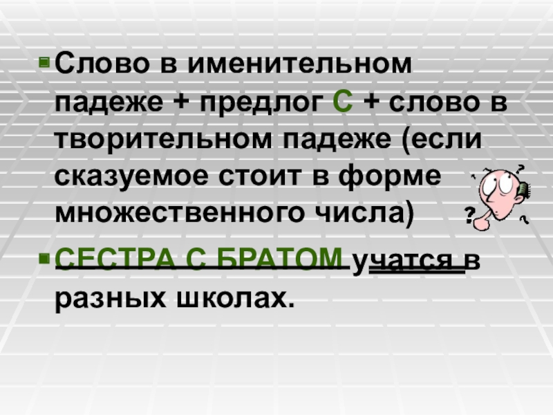 Слайд 11Слово в именительном падеже + предлог С + слово в творительном