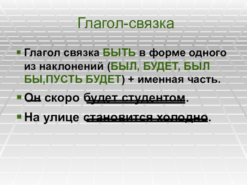 Слайд 19Глагол-связка