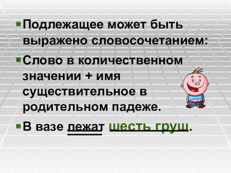Слайд 9Подлежащее может быть выражено словосочетанием: