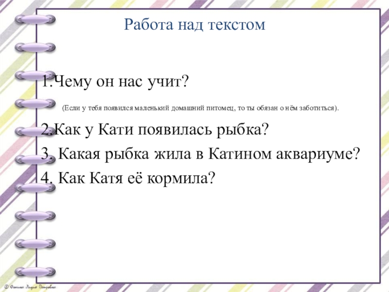 Работа над текстом  1.Чему он нас учит?     (Если у тебя появился маленький