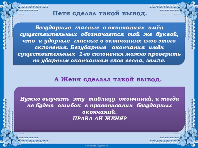 Нужно выучить эту таблицу окончаний, и тогда не будет ошибок в правописании безударных окончаний.