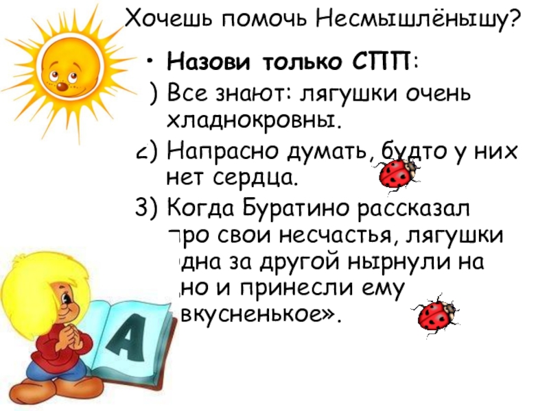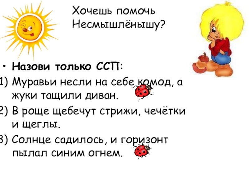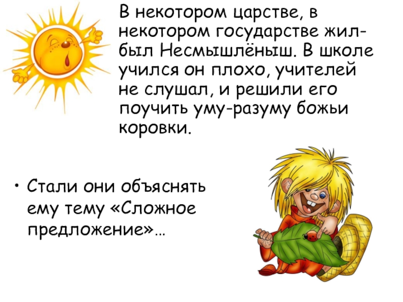 Стали они объяснять ему тему «Сложное предложение»…