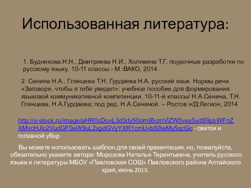 2. Сенина Н.А., Глянцева Т.Н, Гурдаева Н.А. русский язык. Нормы речи. «Заговори, чтобы я тебя увидел»: учебное пособие для формирования языковой коммуникативной компетенции. 10-11-й классы/ Н.А.Сенина, Т.Н.Глянцева, Н.А.Гурдаева; под ред. Н.А.Сениной. – Ростов н/Д:Легион, 2014