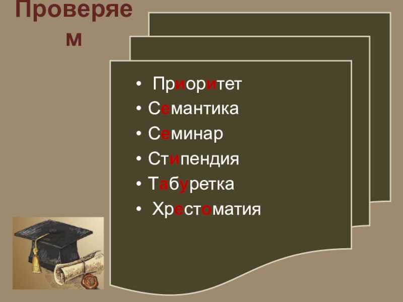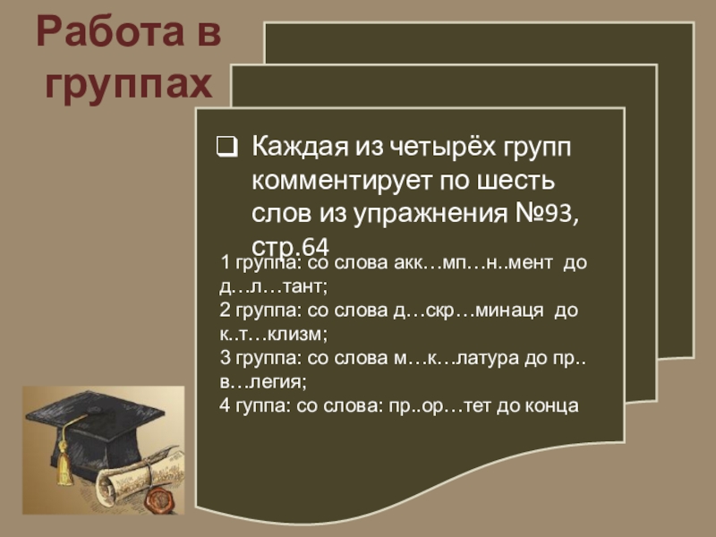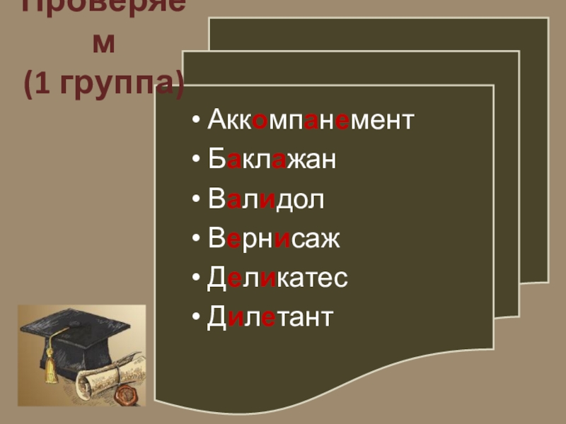 1 группа: со слова акк…мп…н..мент до д…л…тант;