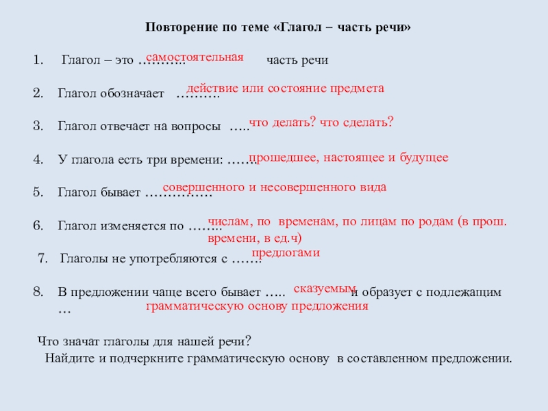 числам, по временам, по лицам по родам (в прош.времени, в ед.ч)