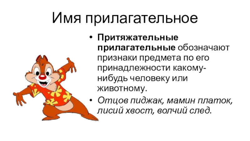 Притяжательные прилагательные обозначают признаки предмета по его принадлежности какому-нибудь человеку