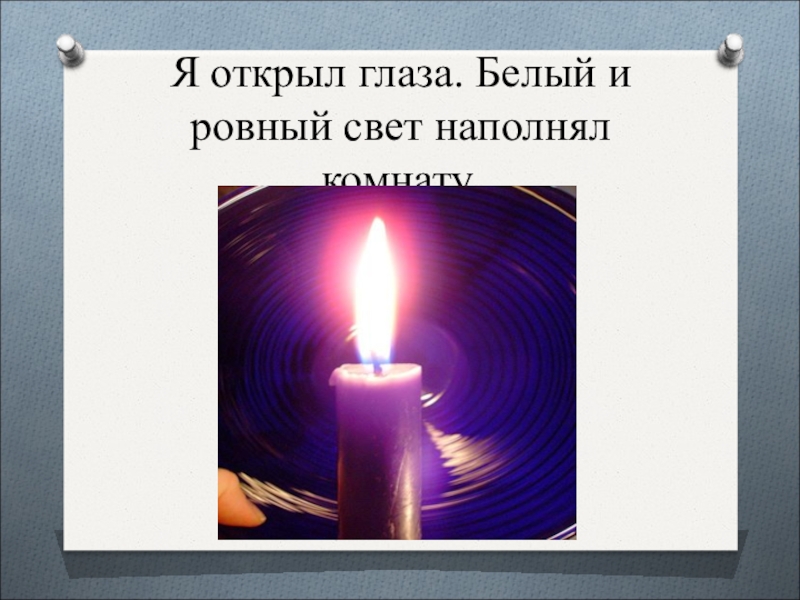 Слайд 12Я открыл глаза. Белый и ровный свет наполнял комнату.
