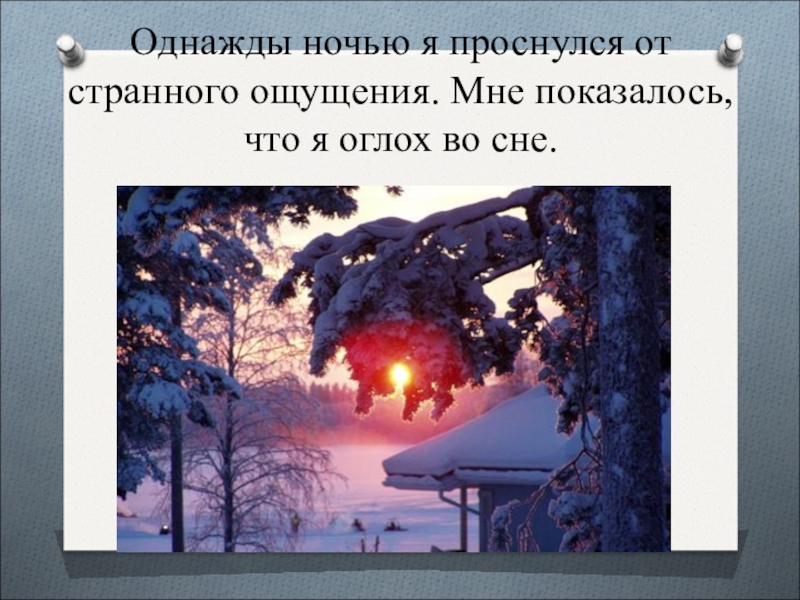 Слайд 6Однажды ночью я проснулся от странного ощущения. Мне показалось, что я