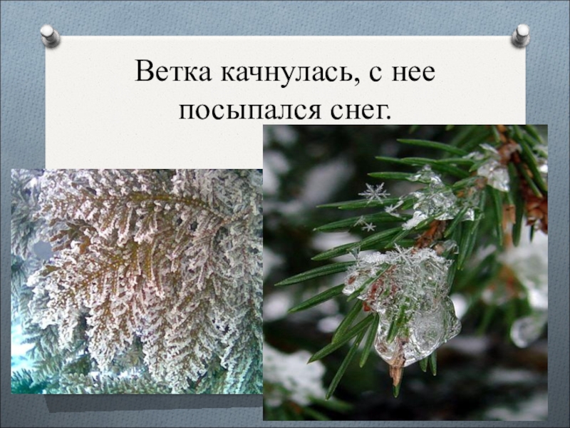 Слайд 16Ветка качнулась, с нее посыпался снег.