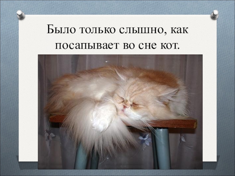 Слайд 11Было только слышно, как посапывает во сне кот.