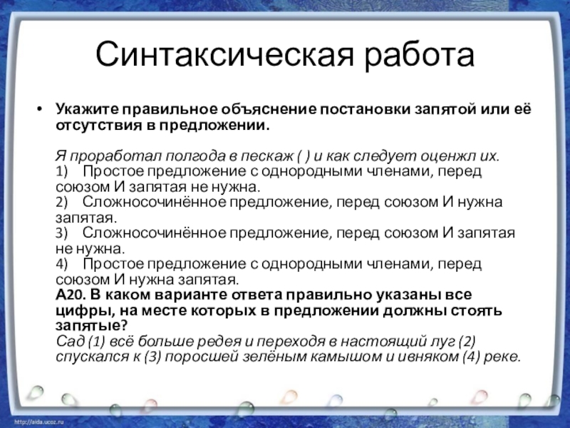 Слайд 6Синтаксическая работа