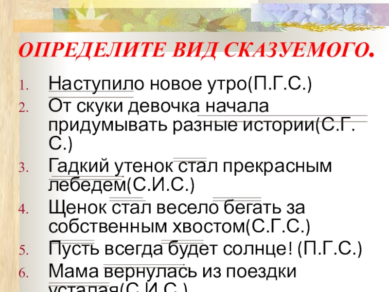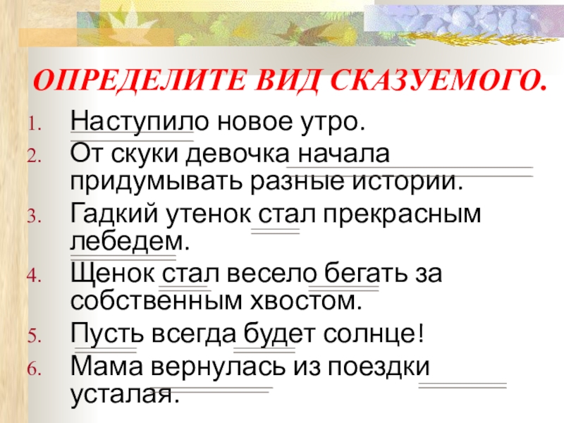 ОПРЕДЕЛИТЕ ВИД СКАЗУЕМОГО.