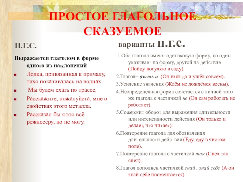 ПРОСТОЕ ГЛАГОЛЬНОЕ СКАЗУЕМОЕ