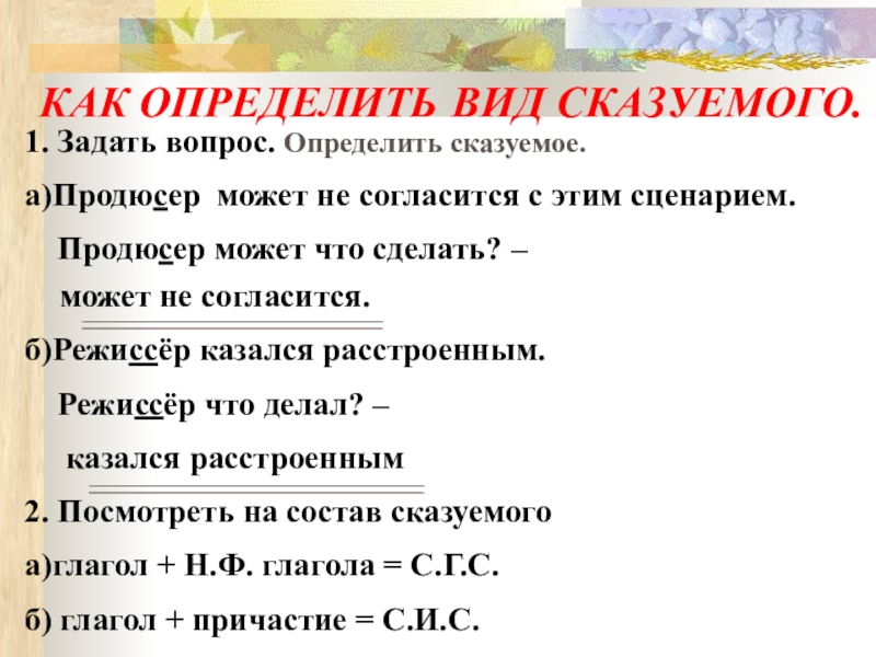 КАК ОПРЕДЕЛИТЬ ВИД СКАЗУЕМОГО.