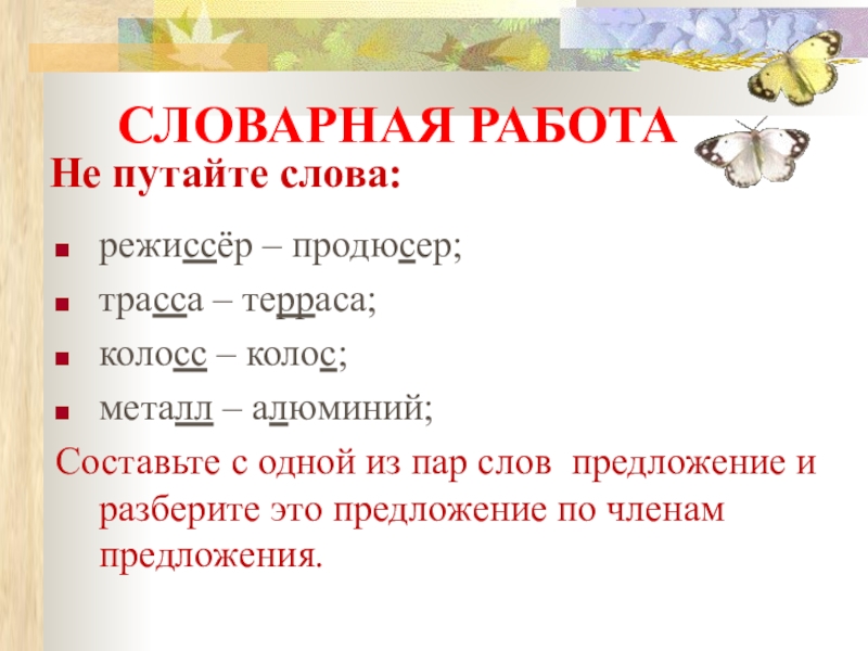 Составьте с одной из пар слов предложение и разберите это предложение по членам предложения.