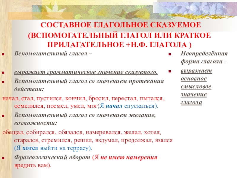 СОСТАВНОЕ ГЛАГОЛЬНОЕ СКАЗУЕМОЕ