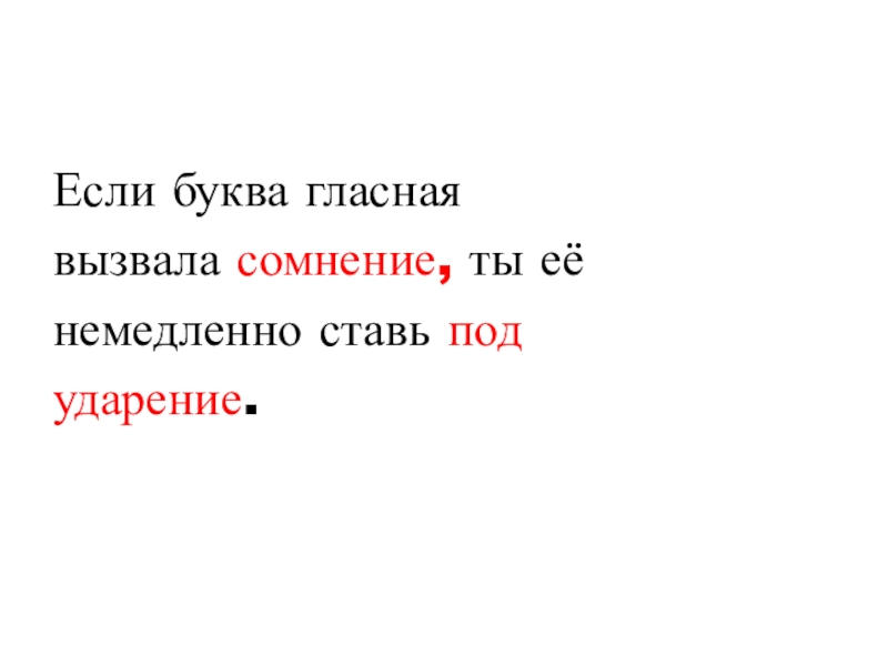 Если буква гласная вызвала сомнение, ты её немедленно ставь под ударение.