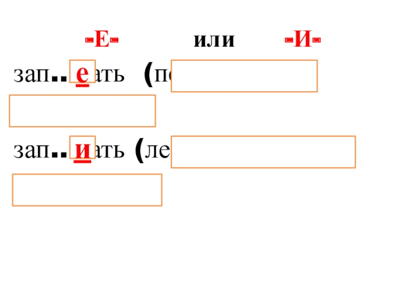 -Е-     или   -И-зап…вать (песню)(петь)зап…вать (лекарство)(пить)еи