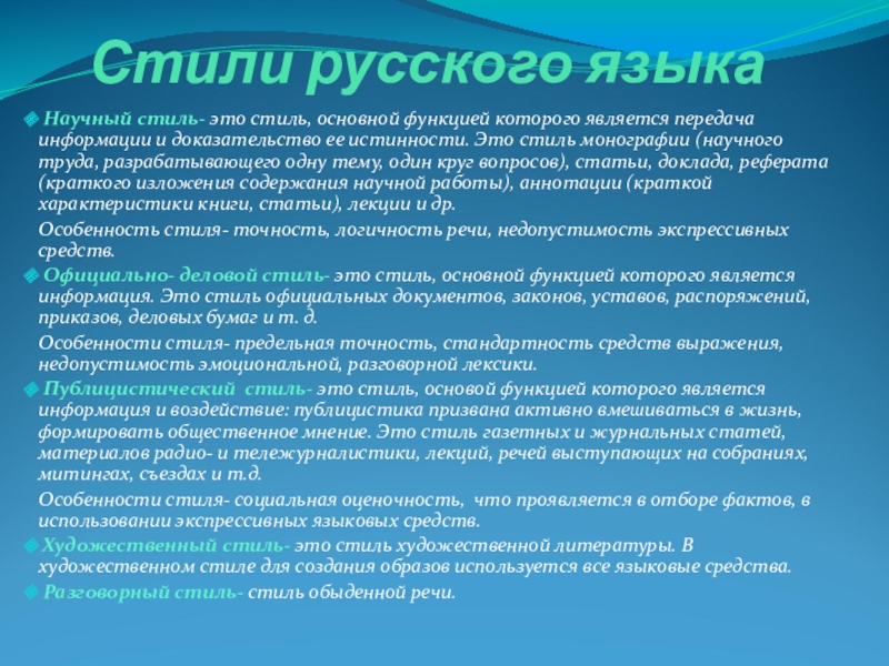 Слайд 2Стили русского языка
