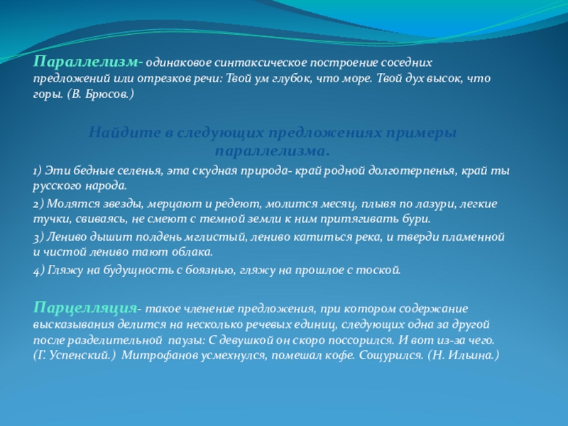 Найдите в следующих предложениях примеры параллелизма.