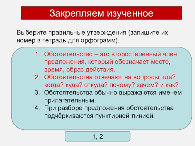 Обстоятельство – это второстепенный член предложения, который обозначает место, время, образ действия.