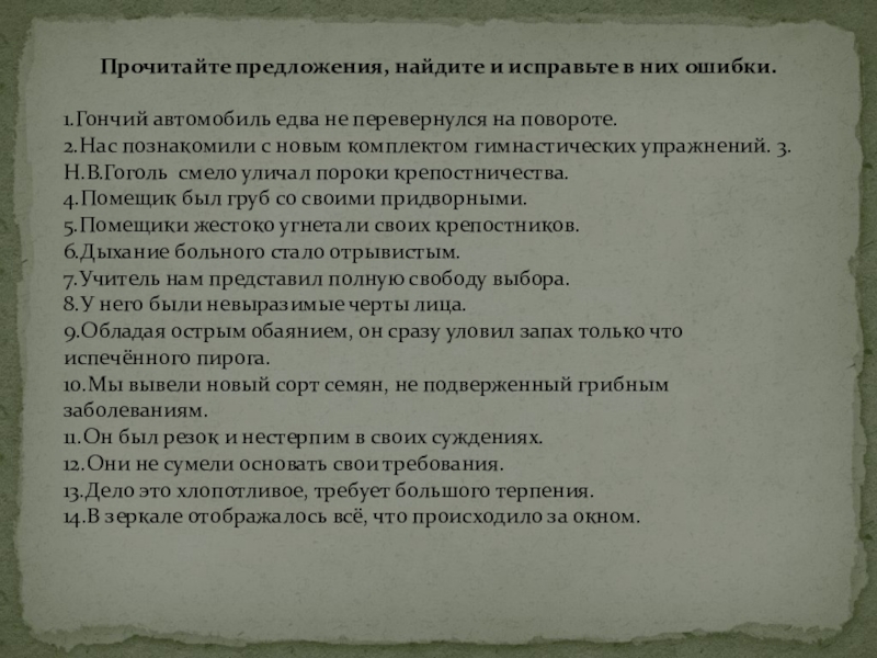 Слайд 7Прочитайте предложения, найдите и исправьте в них ошибки.