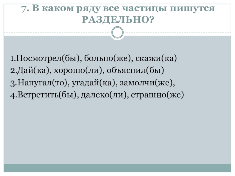 Зачет по теме «Служебные части речи»