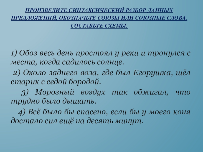 1) Обоз весь день простоял у реки и тронулся с места, когда садилось солнце.