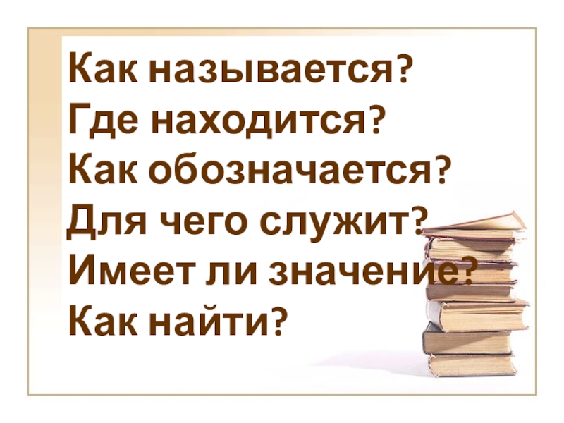 Как называется?Где находится?Как обозначается?Для чего служит?Имеет ли значение?Как найти?