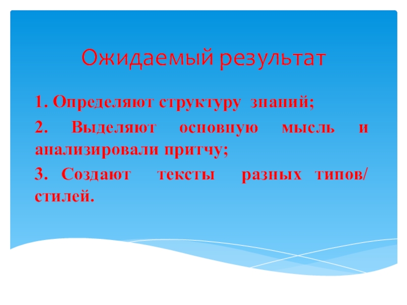 Свободно высказывают свою точку зрения по притче, оценивая поступки героев, опираясь на известные примеры из литературы и окружающей жизни и создают тексты разных типов/ стилей.