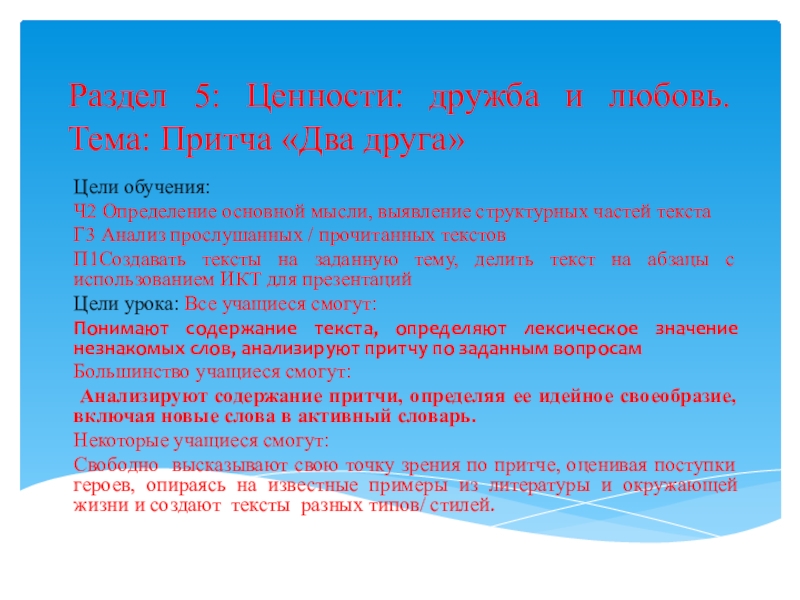 Слайд 2Раздел 5: Ценности: дружба и любовь.
