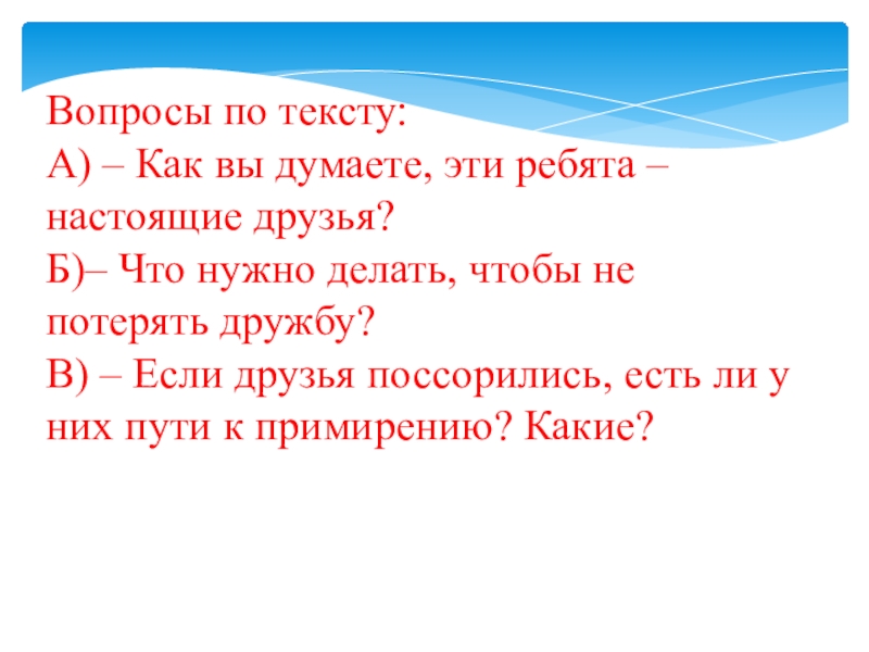 В) – Если друзья поссорились, есть ли у них пути к примирению? Какие?