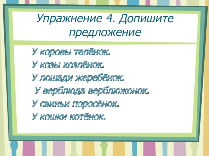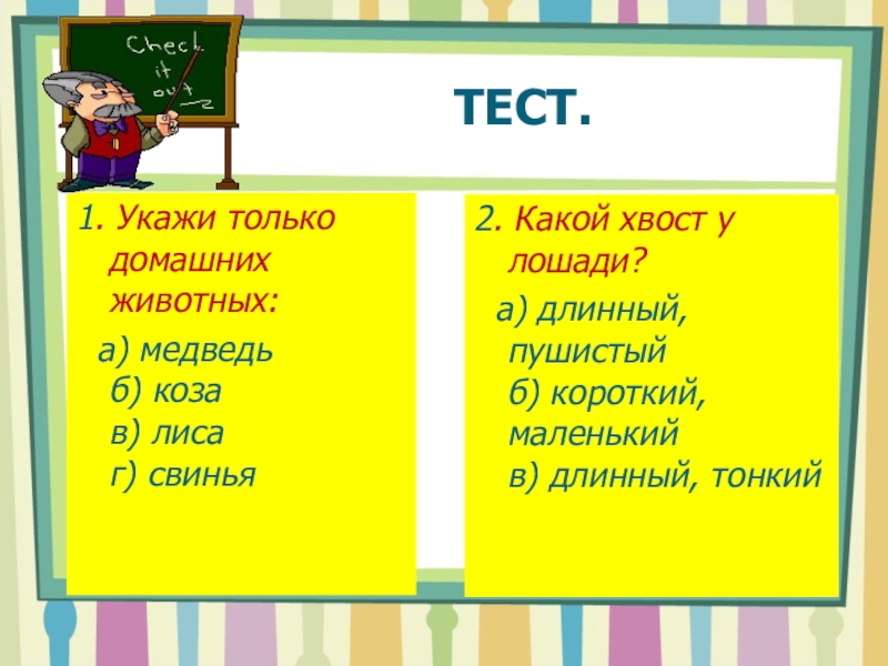 заяц, лиса, слон, волк.