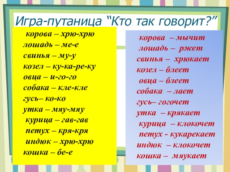 корова – мычит