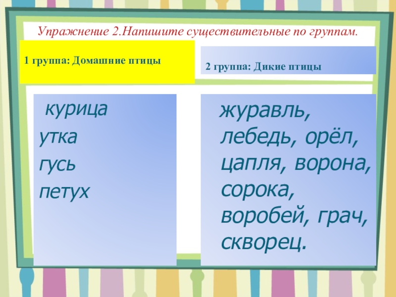 журавль, лебедь, орёл, цапля, ворона, сорока, воробей, грач, скворец.