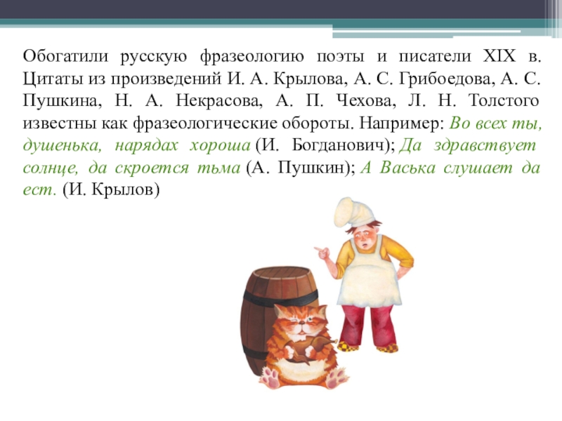 Обогатили русскую фразеологию поэты и писатели XIX в. Цитаты из произведений И. А. Крылова, А. С. Грибоедова,
