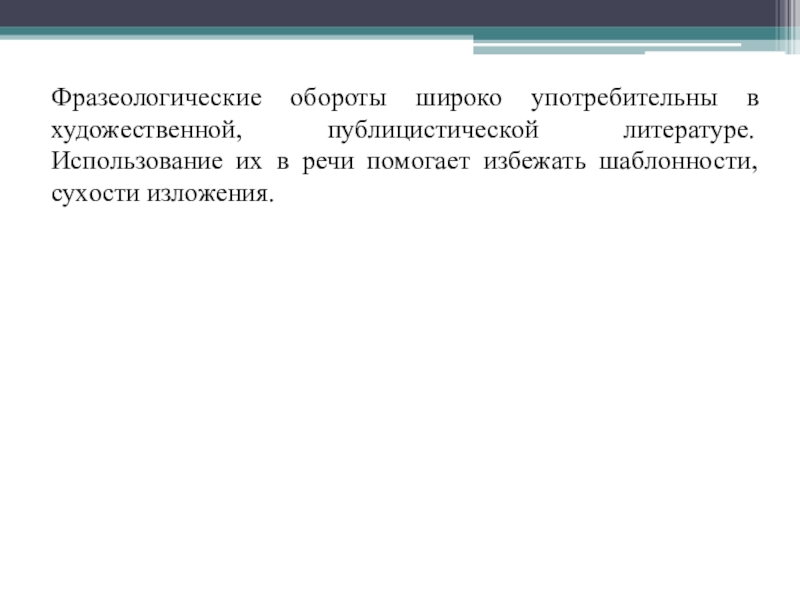 Слайд 13Фразеологические обороты широко употребительны в художественной, публицистической литературе. Использование их в