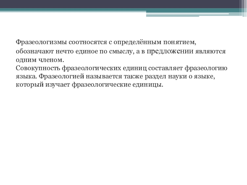 Слайд 6Фразеологизмы соотносятся с определённым понятием, обозначают нечто единое по смыслу, а