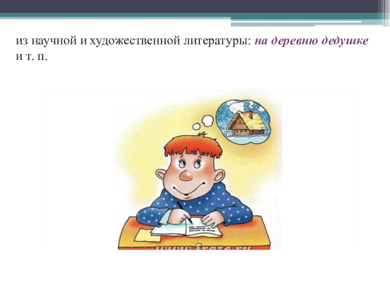 Слайд 11из научной и художественной литературы: на деревню дедушке и т. п.