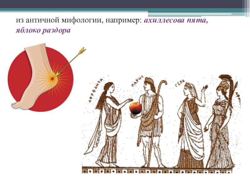Слайд 9из античной мифологии, например: ахиллесова пята, яблоко раздора