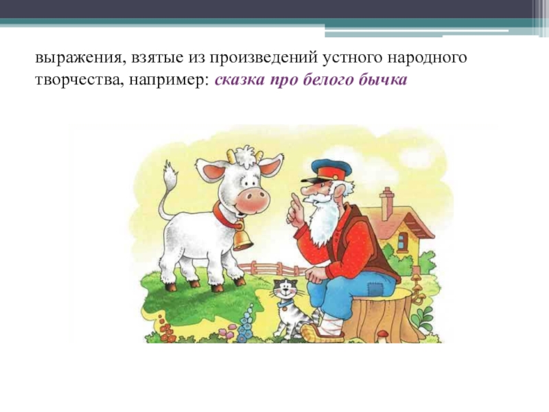 Слайд 8выражения, взятые из произведений устного народного творчества, например: сказка про белого