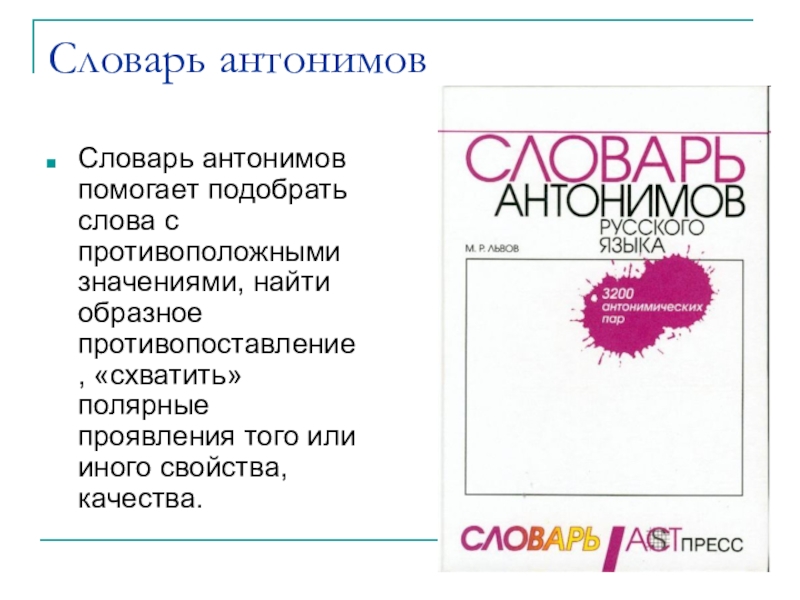 Словарь антонимов помогает подобрать слова с противоположными значениями, найти образное
