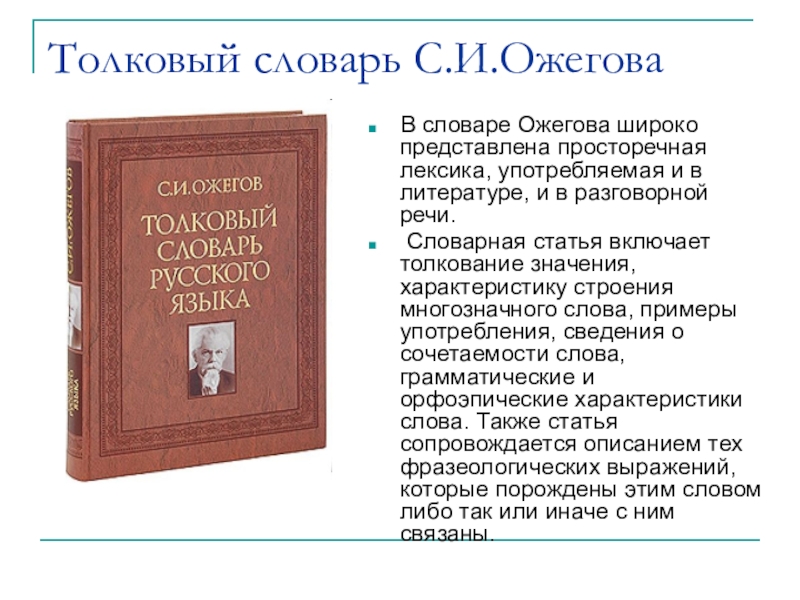 В словаре Ожегова широко представлена просторечная лексика, употребляемая и