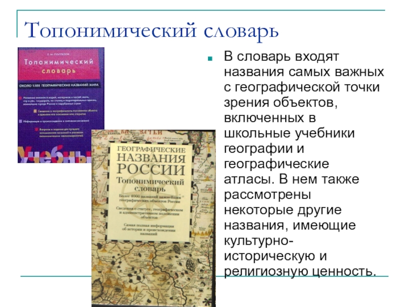 объектов, включенных в школьные учебники географии и географические атласы. В нем также рассмотрены некоторые другие названия, имеющие культурно-историческую и религиозную ценность.