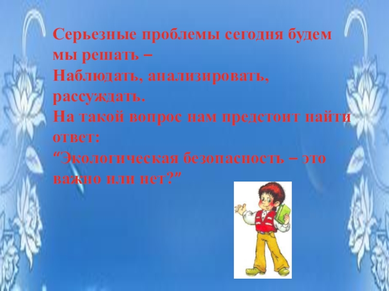 Слайд 3Серьезные проблемы сегодня будем мы решать –