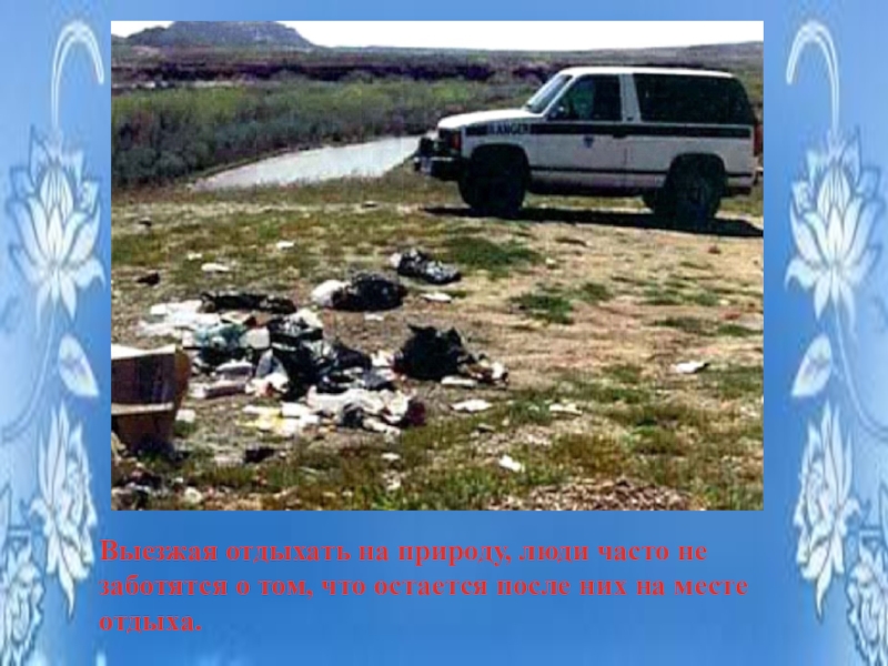 Слайд 31Выезжая отдыхать на природу, люди часто не заботятся о том, что