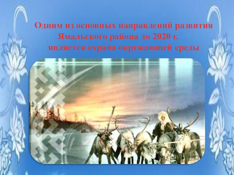Слайд 39Одним из основных направлений развития Ямальского района до 2020 г.