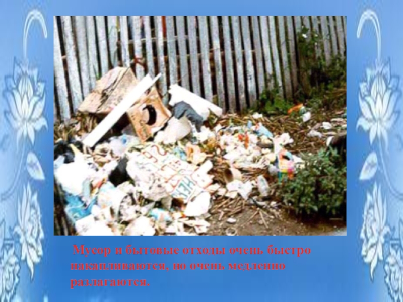 Слайд 30 Мусор и бытовые отходы очень быстро накапливаются, но очень медленно
